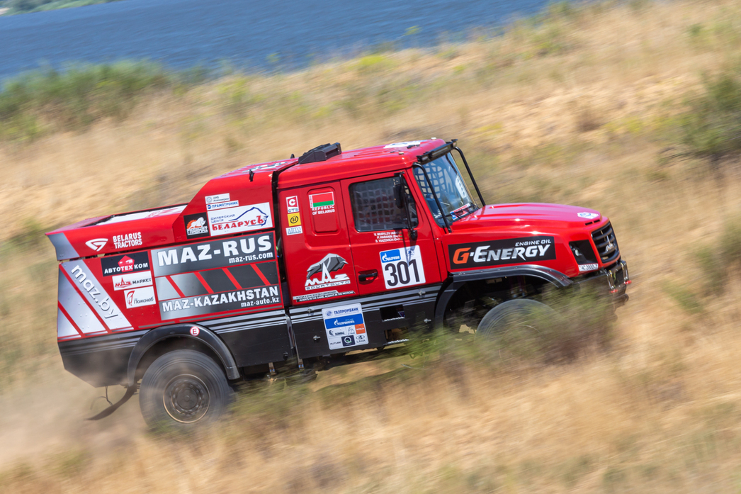 Газовый КамАЗ Сергея Куприянова то ли сломался, то ли ввалился в яму — когда приехал на финиш, то колеса стояли домиком. А у Дмитрия Сотникова отвалился карданный вал. В общем, без потерь ни один КамАЗ на финиш не пришел. Два экипажа команды «МАЗ-СПОРТавто» прибыли к финишу с пробитыми задними колесами. Причем Алексей Вишневский последние 40 км ехал с лопнувшей рессорой. О скорости в этом случае не стоит и вспоминать. Лучший результат среди грузовиков показал экипаж Сергея Вязовича.