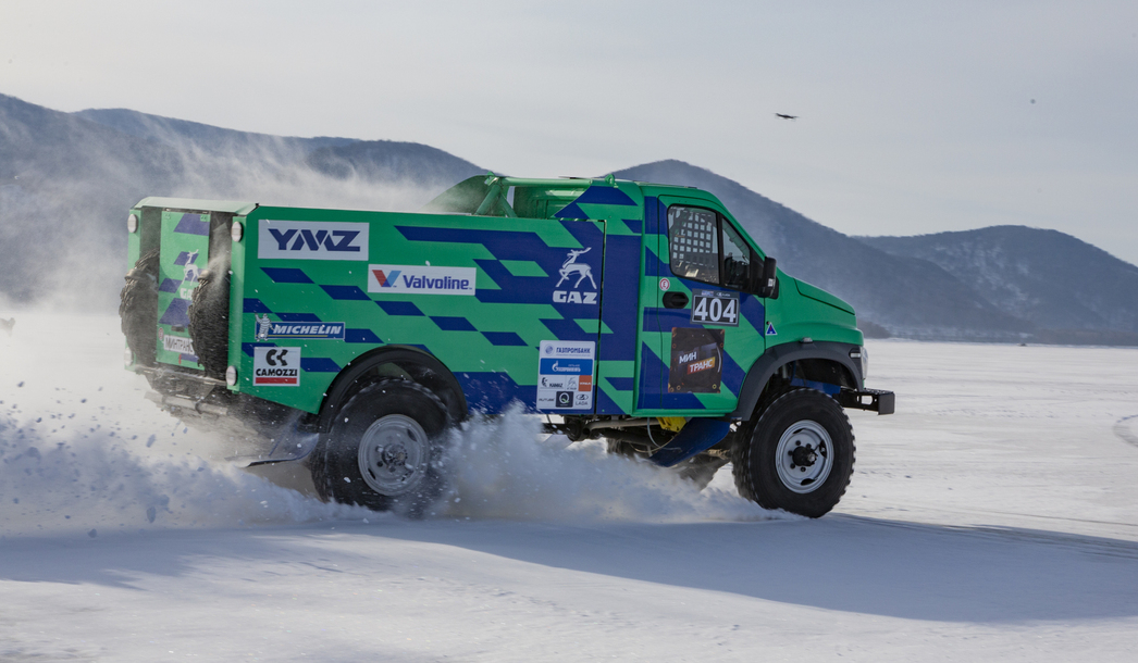 – На «Байкальской миле» мы впервые показали «Валдай 4х4», — рассказал руководитель спортивного отделения Горьковского автозавода Михаил Шкляев. — Эта машина — сборная конструкция, в которой ГАЗ использует оптимальные решения всего модельного ряда. Так, рама, передний мост и передняя рессорная подвеска взяты у полноприводной «Газели». Задний мост вместе с пневматической подвеской — от «Газель City». На мостах установили проставки под 19,5-дюймовые колеса. Двигатель — ЯМЗ−534 (310 л. с. и 1080 Нм) от спортивного «Садко». В паре с ним используется коробка передач от ПАЗа. Сам мотор не под кабиной, а смещен к центру машины для лучшей развесовки.