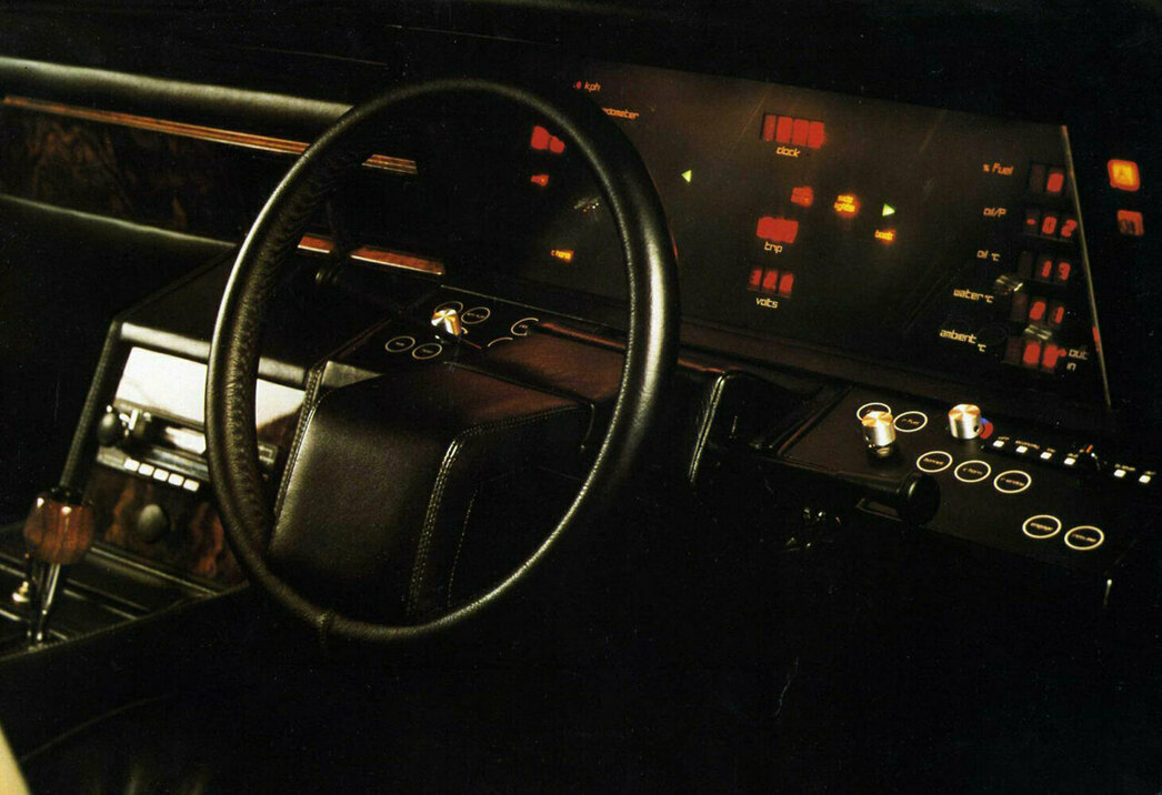 Выпущенная в количестве 645 экземпляров, эта модель получила название в честь престижной британской марки Lagonda – ту машину вы могли видеть в сериале «Пуаро». Сам бренд перешел к «Астону» в в 1947 году, а в 1974-м компания неожиданно для всех выпустила четырехдверный седан, наряду с именем Lagonda получивший мотор V8, крайслеровский трехступенчатый автомат ТorqueFlite и… первый в истории автомобиля бортовой компьютер с цифровым дисплеем и монитором на электронно-лучевой трубке. Разумеется, уровень технологии не позволил создать надежную систему, но не оценить провидческий дар AstonMartin невозможно.