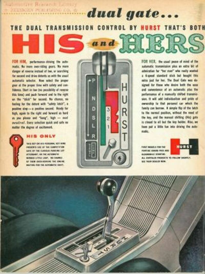 На этом автомобиле из класса «масл-каров» чуть ли не впервые была представлена очень интересная спортивная трансмиссия Hurst Dual Gate shifter, также известная как «His&Hers» («Его и Ее») – своеобразная предшественница современных АКП со спорт-режимом. Название подчеркивает возможность водителя ездить и на «автомате», и на «механике». Трансмиссия предлагалась как часть спортпакета Hurst/Olds. Перемещение селектора выбора режима движения в лево соответствовало обычному автоматическому типу (R-N-D), перевод рычага в правую сторону превращал трансмиссию в псевдомеханику, позволяя шоферу самостоятельно определять наилучшую передачу. Хитрый механизм делал невозможной включение заднего хода во время движения или промах в «нейтраль». На коробку давалась пожизненная гарантия.