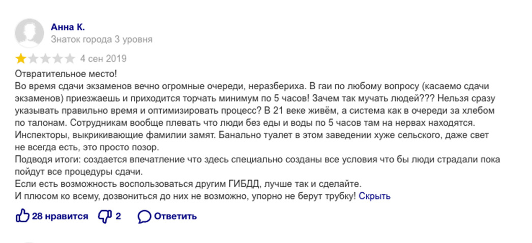 Поводом обратить внимание на этот объект стал один из свежих отзывов в интернете о деятельности местных экзаменаторов, хотя, если честно, в Сети подобных оценок подразделения — множество:
