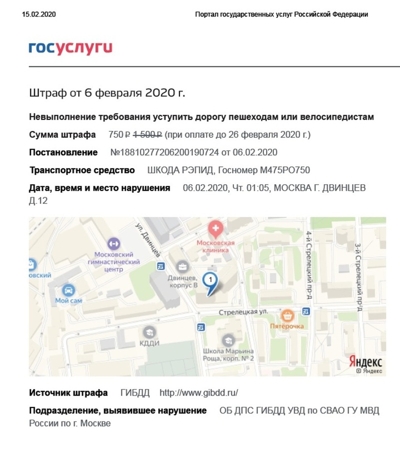 В середине февраля один из читателей портала «АвтоВзгляд», Роман Н., заглянул в свой личный кабинет на портале госуслуг и с удивлением обнаружил там два «письма счастья» со штрафами, датированными 6 февраля — на 1500 и 500 рублей соответственно. Первое постановление за номером 18810277206200190724 утверждает, что его получателя покарали по ст. 12.18 КоАП за «непредоставление преимущества в движ. пешеходам, велосипедистам, имеющим такое право». А второе — №18810277206200190716, — составлено по ст.12.5. ч.3.1 КоАП за «управление т/с со стеклами, светопропускание которых не соответствует требованиям тех.регламента». И все формально верно. За исключением пары маленьких деталей.