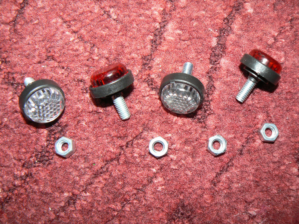 Красивые болтики для крепления номерных знаков можно купить в любом автомагазине и в интернете. На выбор их предлагают с белыми и красными катафотами на «головках», а то и вовсе набором, состоящим из двух белых и двух красных отражателей. А чтобы окончательно убедить в их нужности любителей «украшательств», яркую картинку с товаром продавцы сопровождают рекламным описанием в стиле: «Наши светоотражающие болты выделят вас в потоке и сделают заметнее в темное время суток».