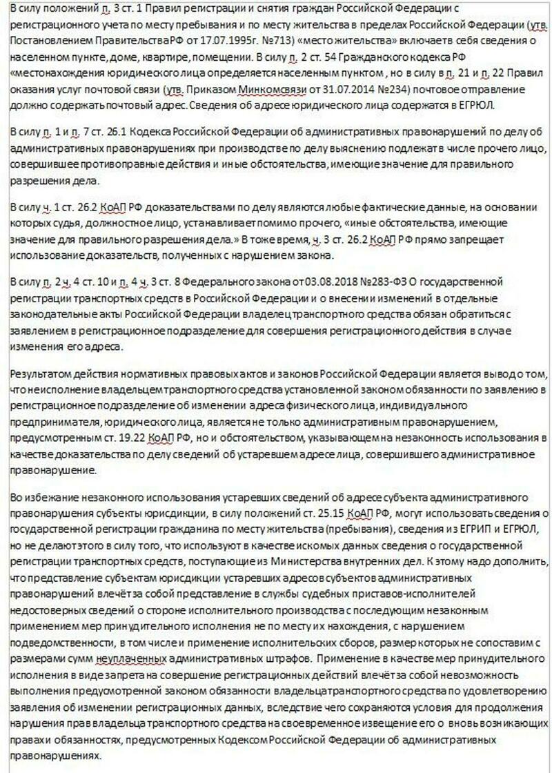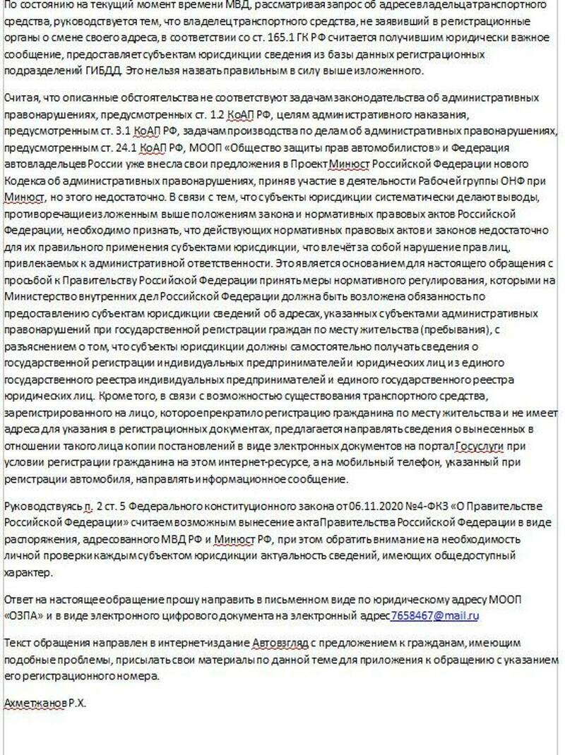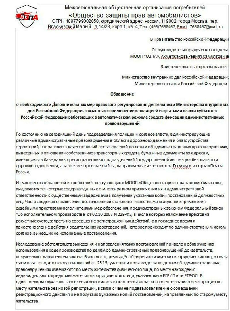 Общество защиты прав автомобилистов так и сделало. В Правительство РФ направлено обращение с предложением установить порядок определения адреса для направления копий постановлений. Уже сейчас в ст. 25.15 КоАП РФ сказано про направление всевозможных извещений по месту жительства гражданина и по местонахождению индивидуального предпринимателя или организации, указанных в единых государственных реестрах индивидуальных предпринимателей и юридических лиц.