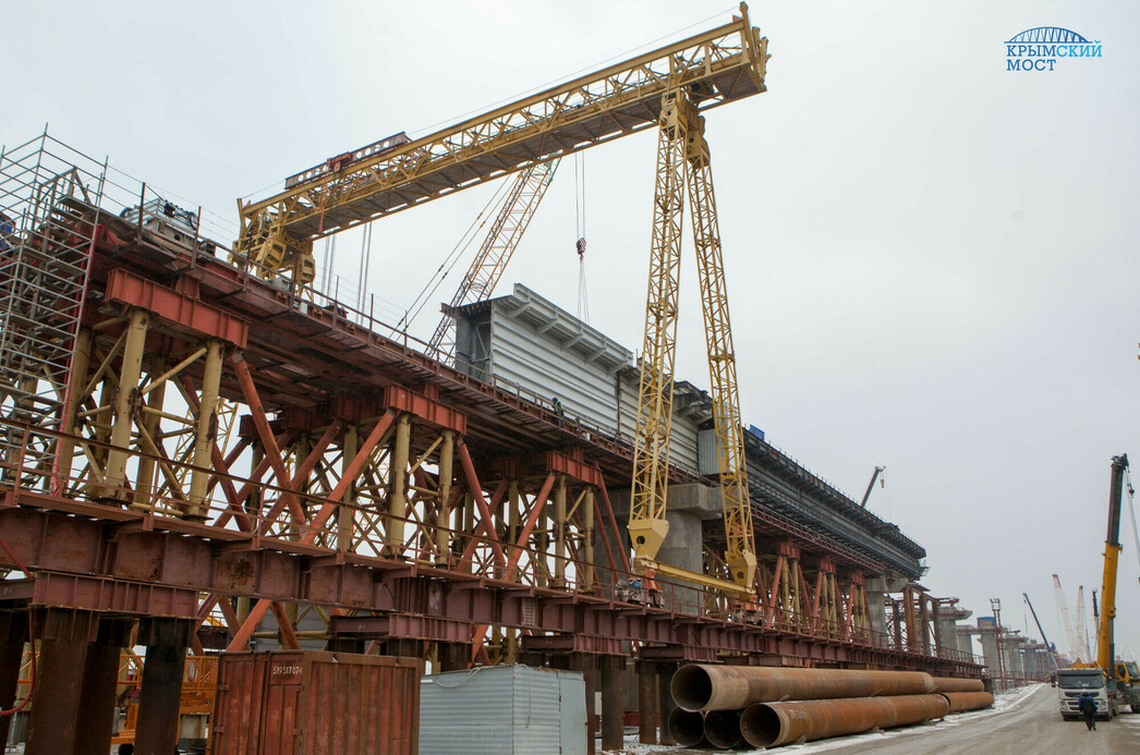 По словам представителей компании, в нынешнем году работу по сооружению пролетов железной дороги начнут на всех морских участках Крымского моста. Над Керченским проливом на 64 опорах возведут более шести километров металлоконструкций.