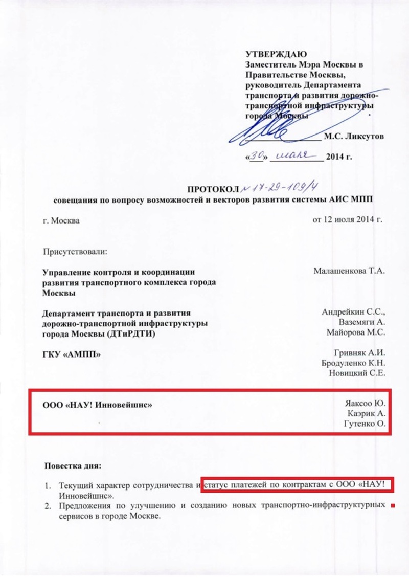 Лето – лучшее время для скандала вокруг любого непотребства со стороны любого чиновника. Народ в отпусках, а кто трудится – расслаблен городской жарой и от того ленив. Так что начальнику Дептранса столичной мэрии г-ну Ликсутову отчасти повезло. Содержимое документика, уличающего его в очередном публичном обмане жителей Москвы, попал в соцсети именно сейчас, а не месяцем позже. Это позволяет надеяться, что участникам скандала удастся его потушить в режиме «сам собой рассосется». О чем же идет речь? Оказывается, еще в начале лета прошлого года Максим Ликсутов собственной подписью заверил некий документ, в котором дочерней компании некой эстонской фирмочке под названием «NOW! Innovations OÜ» поручается «предоставить решения по организации доступа к парковочным местам во дворах на платной основе»! А еще, в том числе, о «единой системе контроля нарушений в пределах города, необходимых при реализации контроля въезда». Документ, если верить сканам, выложенным, например, по адресу http://ezhick.livejournal.com/144686.html, датирован 30 мая 2014 года.