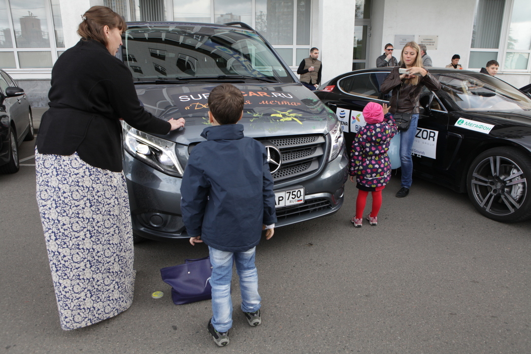 Тому, кто не видел сияющих глаз детишек, шумной толпой высыпавших из дверей центра, трудно представить из восторг. Одни, забравшись в роскошный салон, смогли посидеть в автомобилях, которые даже на столичных улицах встретишь нечасто, покрутить руль и представить себя завзятыми водителями. А другие в это время увлеченно расписывали кузов «Мерседеса» акварельными красками.