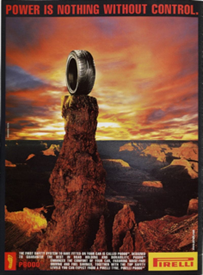 Отметим, что в конце 70-х настоящий фурор произвела работа, где из 140 автомобилей сформировали легендарную букву P — то есть Pirelli. Фотография этой композиции была сделана Адрианом Гамильтоном с высоты 85 метров. А творение легендарного фотографа Энни Лейбовица и Карла Льюиса в туфлях на высоком каблуке и лозунг «Power is Nothing without Control» в 1994 году стали и вовсе культовыми в истории рекламы.