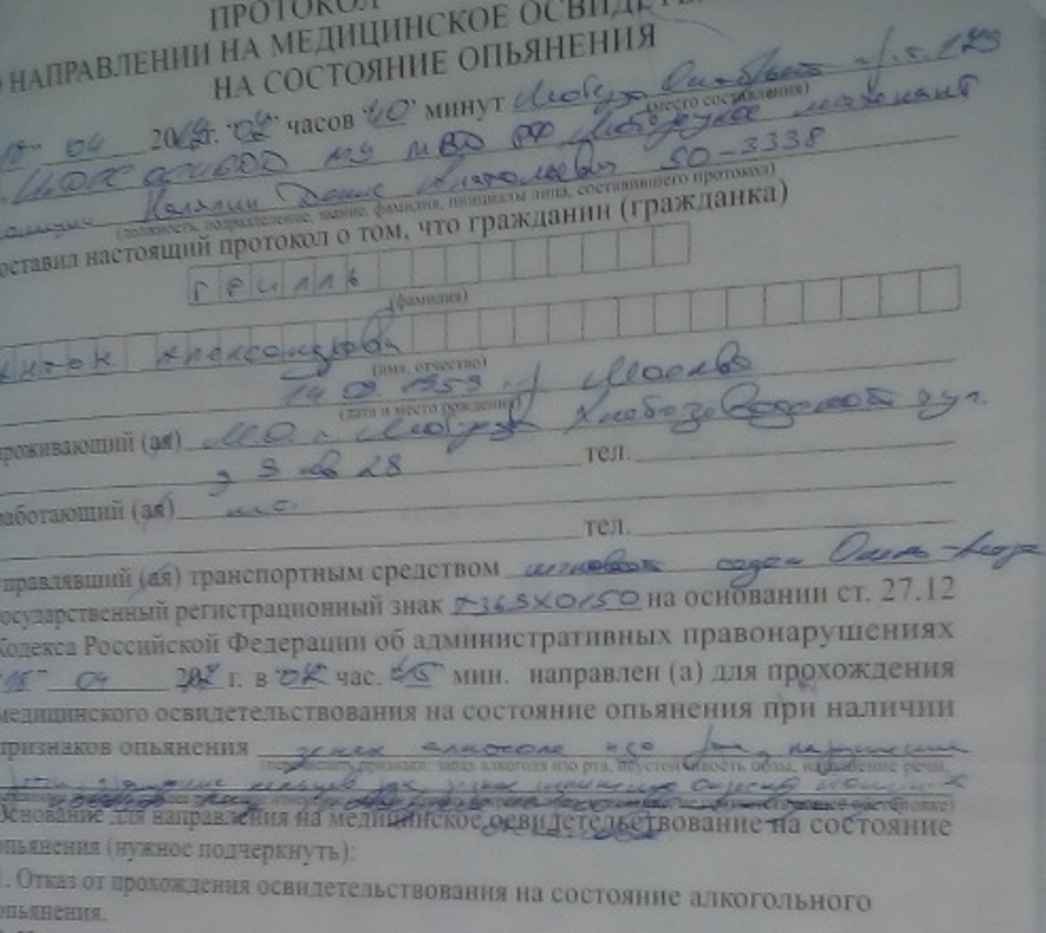 Но разве такая «мелочь» может остановить наших придорожных полицейских в их священной войне с водителями и здравым смыслом? И служивые везут человека на медосвидетельствование на основании того, что, по их мнению, от человека просто разило алкоголем. В направлении так и написано — запах изо рта. Хотя любой, даже самый непрофессиональный нарколог подтвердит, что при нулях на алкотестере никакого запаха алкоголя быть не может в принципе (в худшем случае — запах перегара, который часто путают с запахом алкоголя — от вчерашнего возлияния, а самого алкоголя в выдыхаемом воздухе уже нет, поэтому алкометр и показывает 0). Что это, как не откровенная полицейская подстава? В которой чуть позже с удовольствием приняли участие и люберецкие наркологи. Хотя по-началу дела в местном наркодиспансере у нашего героя складывались неплохо.