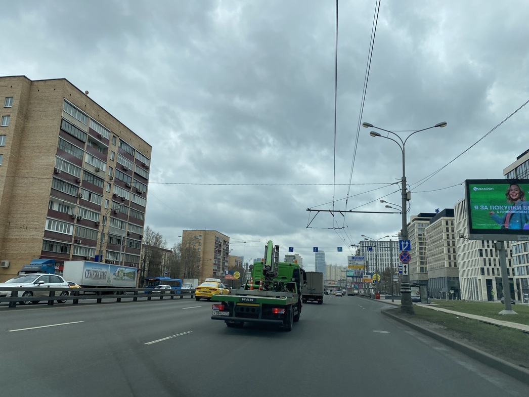 Но коронавирус и ответственное к его угрозе отношение соотечественников сделали свое дело: по Дмитровке долетаю до улицы 1905 года за 1 час 10 минут, по платнику — за 50 мин. Легкового транспорта в Подмосковье почти нет: большегрузы, да «Газели».