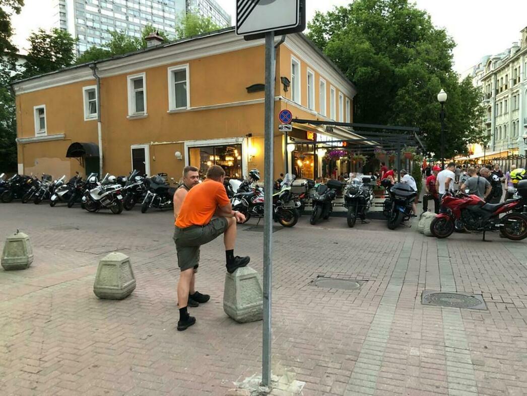 Не прошло и трех дней, как на Арбат в знак поддержки приехало несколько десятков мотоциклов из одного очень известного в стране мотоклуба. Байкеры демонстративно запарковали своих железных коней прямо на пешеходной зоне старого Арбата в знак протеста против гонений. Приехавший экипаж ДПС, вызванный местными жителями, даже не стал выходить из своего автомобиля, опасаясь гнева праведного, мотоциклетного. Испив кофе и постояв немного, приехавшие мотоциклисты выстроились в колонну и дружно ретировались.