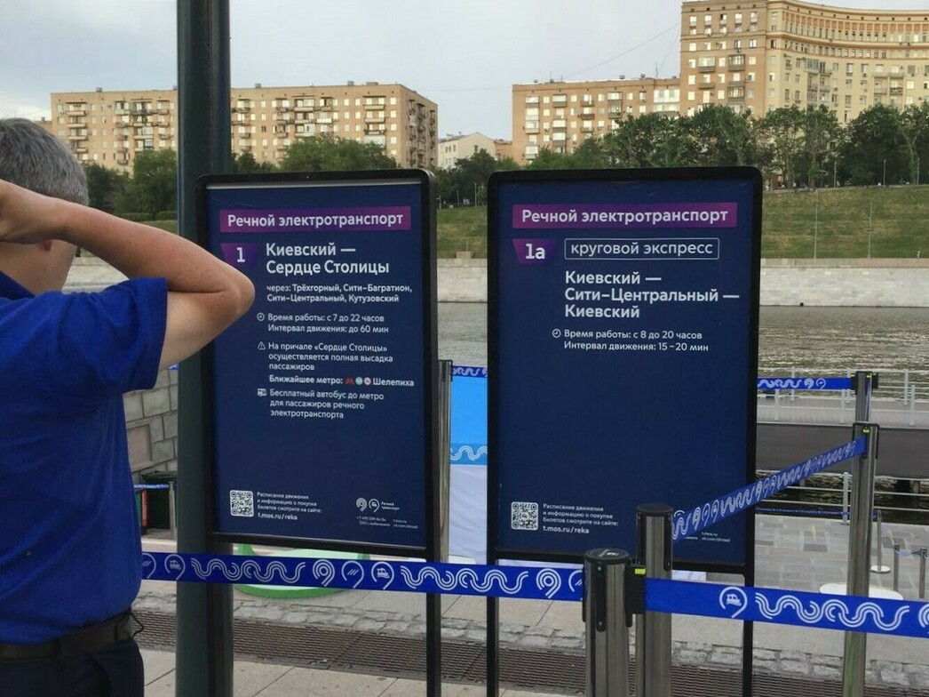 В предвкушении чего-то интересного впервые приехала на причал «Киевский», который находится в пяти минутах от одноименной станции метро. Именно оттуда и начинают свой путь электросуда. И все вроде бы хорошо, но такую длиннющую очередь я увидеть никак не ожидала. Понятное дело, что стоять на жаре мне совсем не хотелось, а потому подошла к сотруднице Дептранса и поинтересовалась, когда мне лучше приехать, чтобы спокойной сесть на трамвайчик.