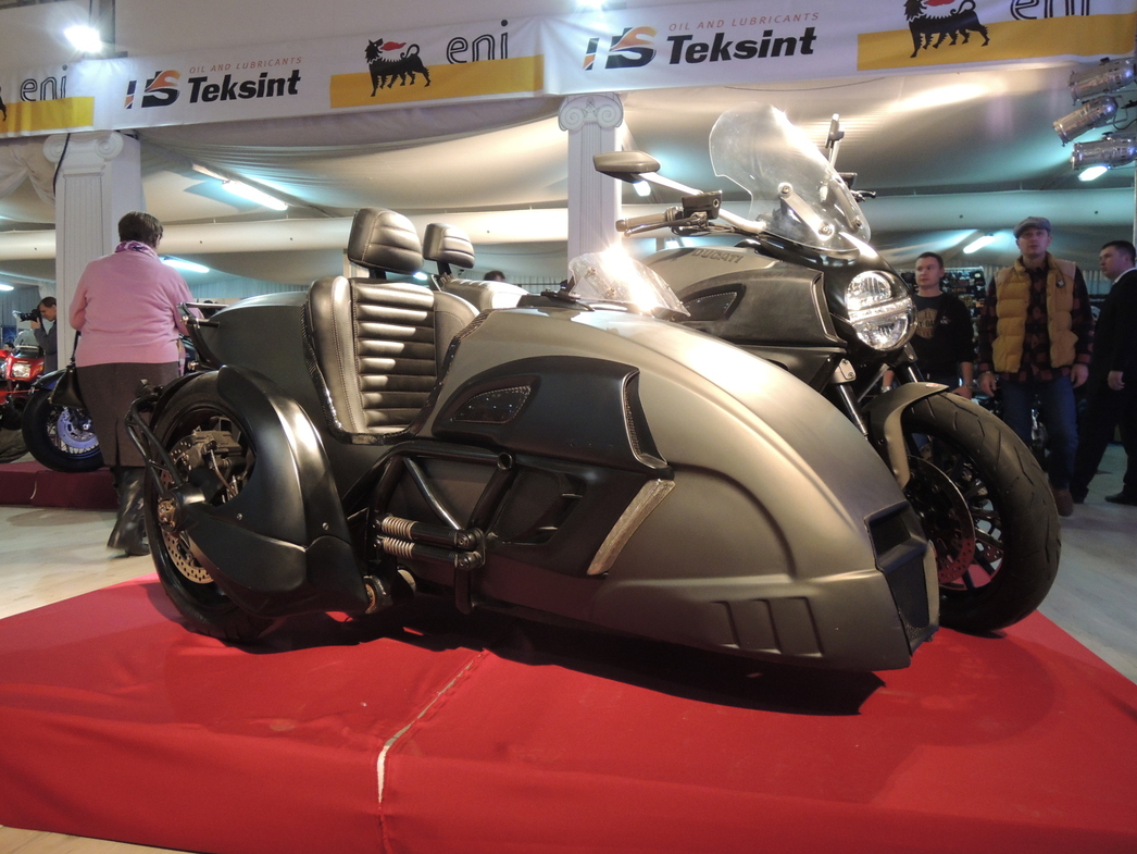 Причем львиную долю экспонатов представляли отечественные «Уралы», однако нашлось местечко и для Harley-Davidson и даже для модного Ducati Diavel, который также оборудовали коляской. Некоторое количество «кастомов» представили как крохотные частные мастерские, так и уже именитые ателье вроде мастерской Юрия Шифа. Серийных же производителей было не так много, но все же их представляли BMW, Yamaha, KTM, и довольно обширно – поделки от отечественной компании Stels.