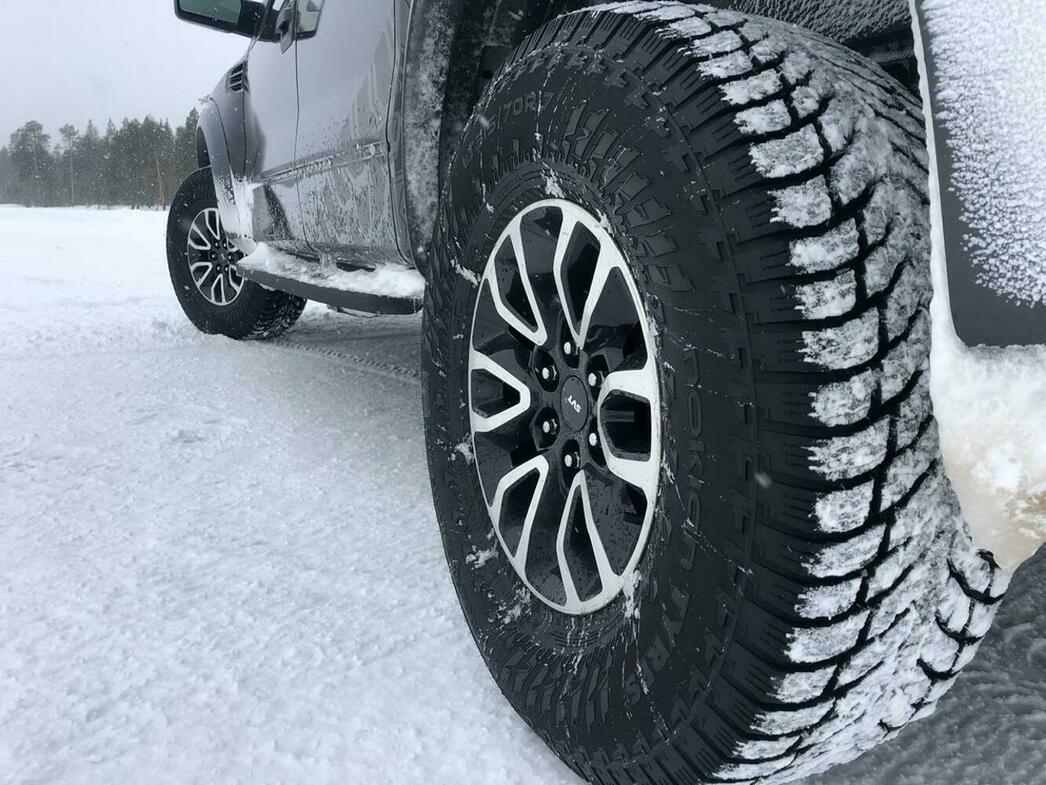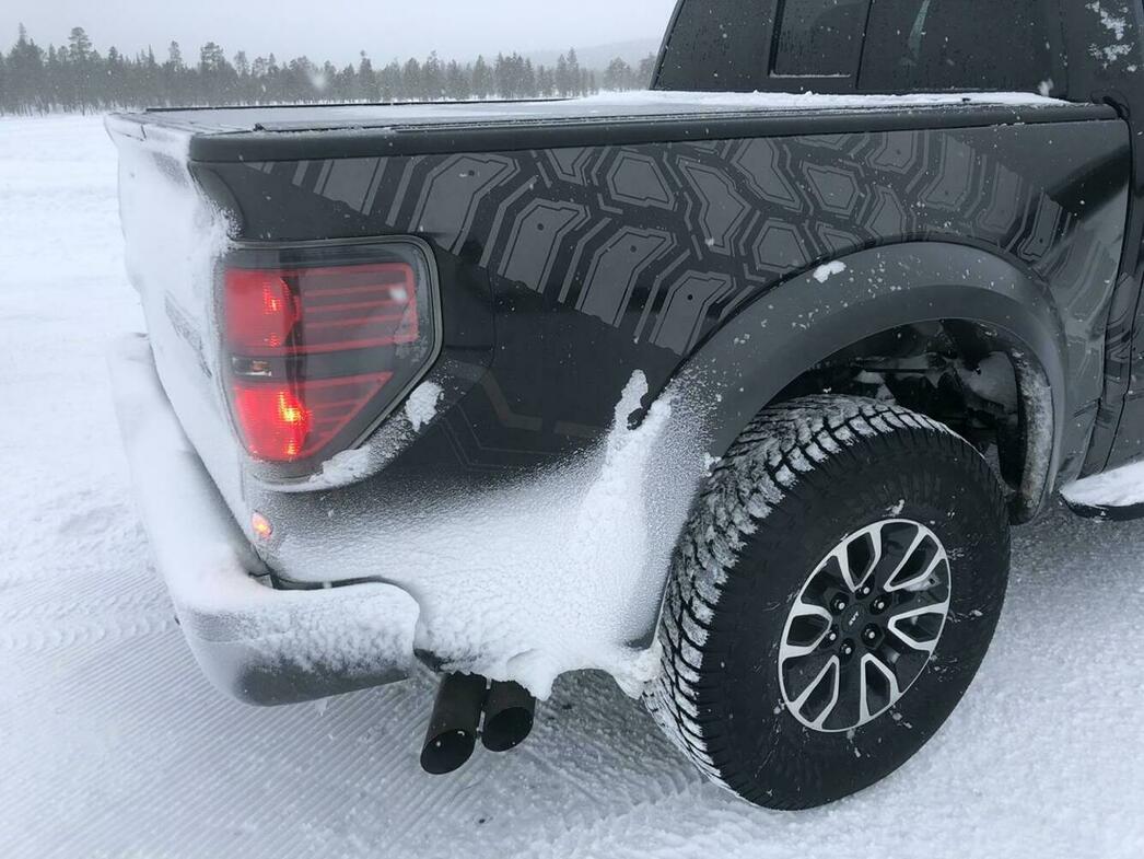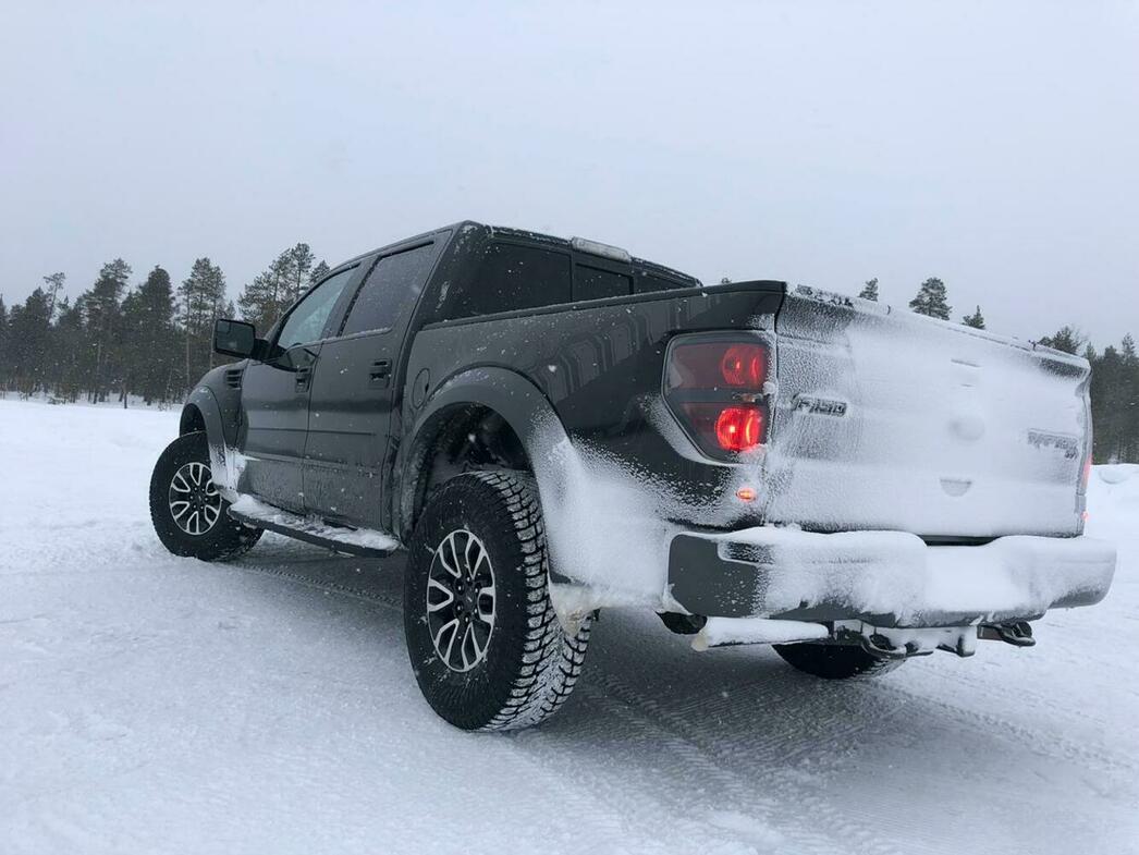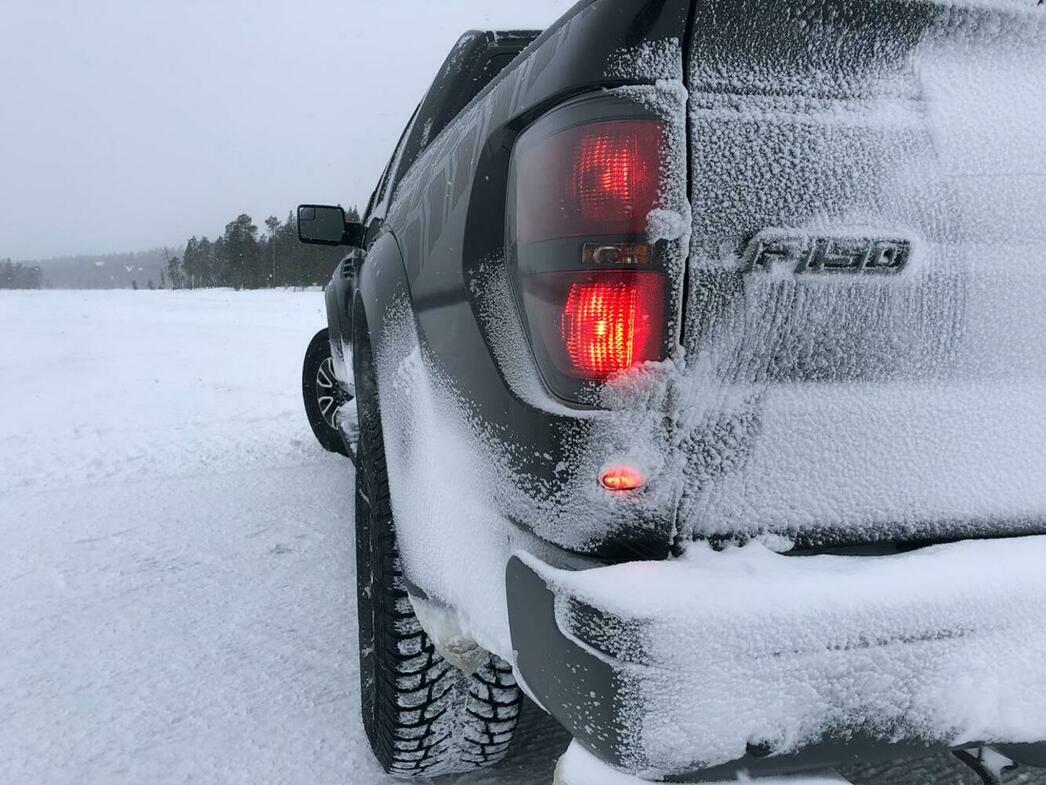 Честь вместе с нами проверить Hakkapeliitta LT3 на практике выпала тяжелому американскому пикапу Ford F-150 Raptor. Трехтонный внедорожник, оснащенный зловещим V8 мощностью 411 сил, проваливается в снег так, что сопровождение бульдозера в пути было бы не лишним.