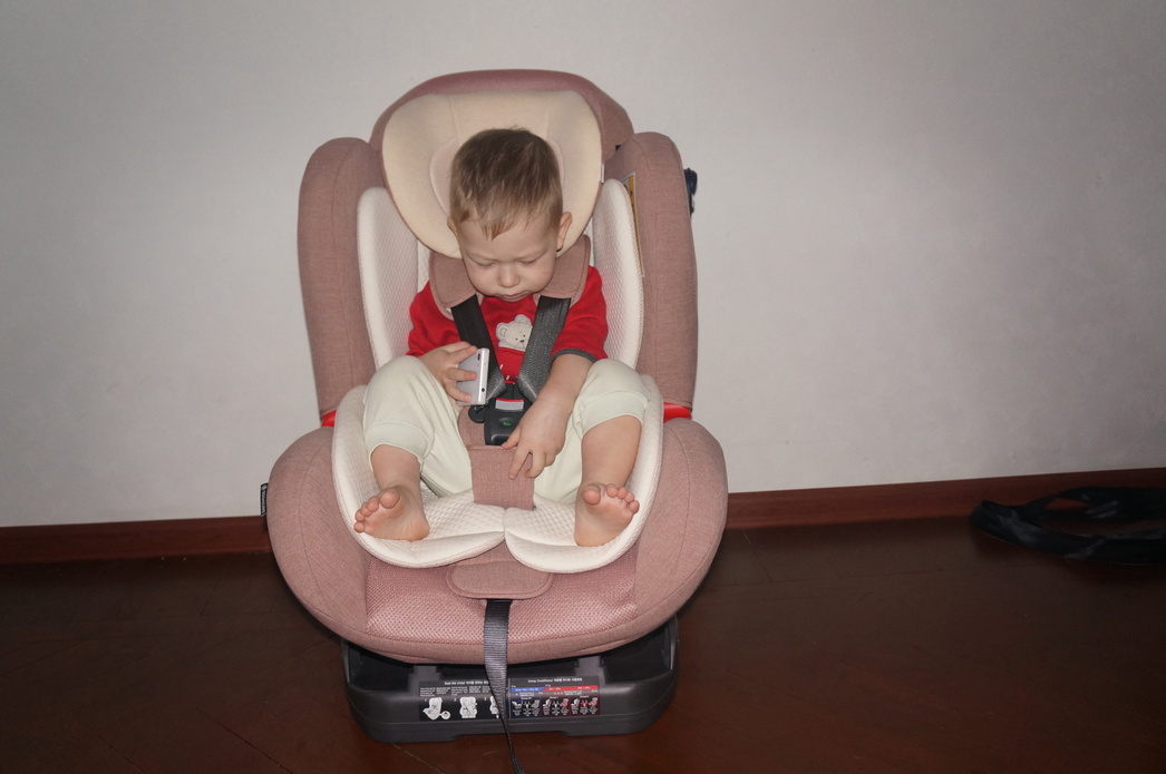 В это кресло Сашка сразу сел очень хорошо, весело стуча ногами по выступающей части подставки (которая к тому же защищает сиденье машины от грязи), колени удобно пришлись на изгиб сиденья.