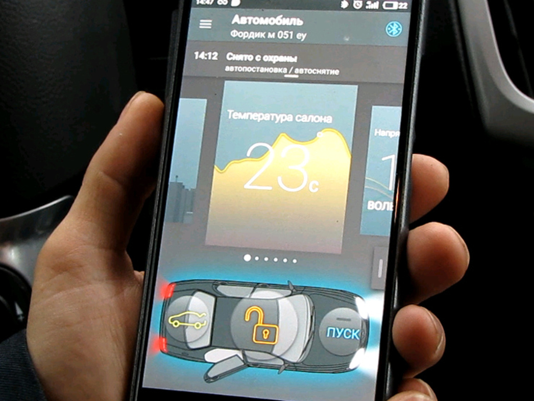 Как вы уже поняли, ваш смартфон для сигнализации Scher-Khan Mobicar 2 превращается в индивидуальную метку, без распознавания которой не получится запустить мотор. Но, кроме того, благодаря все тому же приложению, ваш мобильник — это еще и запасной брелок с расширенным функционалом по настройкам. Все меню на русском языке, интуитивно понятно настолько, что с ним справится даже абсолютная «блондинка»! Настроить чувствительность всех датчиков, настроить сценарии автоматического запуска мотора. Да-да, Mobicar 2 способен производить автозапуск по точному времени, по достижению определенной температуры (как минусовой, чтобы вы садились в прогретый автомобиль, так и плюсовой, чтобы жарким летним днем вы оказывались за рулем уже охлажденной кондиционером машины), при разряде аккумулятора (чтобы остатков батарее хватило на запуск движка, ну а дальше генератор вернет к жизни АКБ). И вот чтобы настроить дистанционный автоматический запуск, достаточно открыть приложение в смартфоне и пару раз тыкнуть по экрану. Пожалуй, более простого общения человека и сигнализации автомобиля, я еще не встречал.