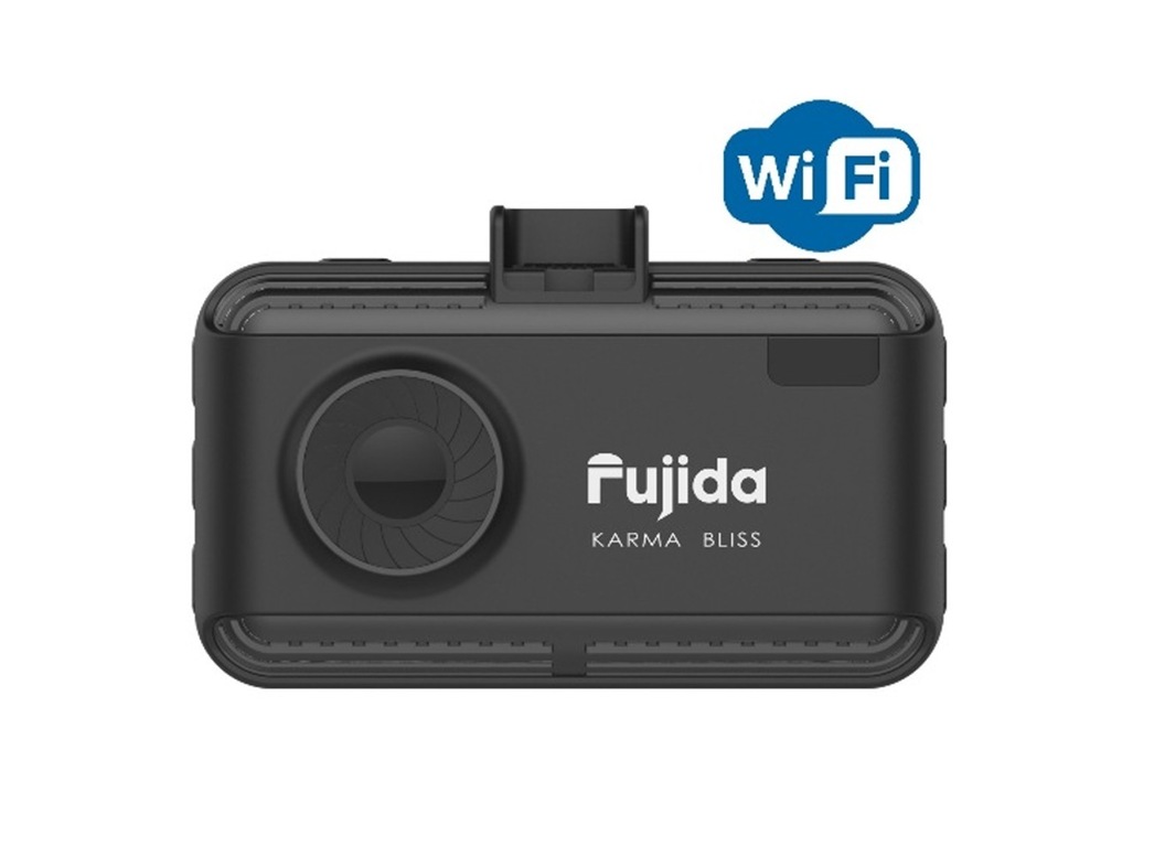 Широкий угол съемки — 170° — запись времени, даты и скорости, итоговая картинка в формате Full HD, WIFI модуль, датчик удара (G-сенсор), GPS, ГЛОНАСС, детектор движения в кадре, возможность подключения дополнительных камер — все это Fujida Karma Bliss WiFi.
