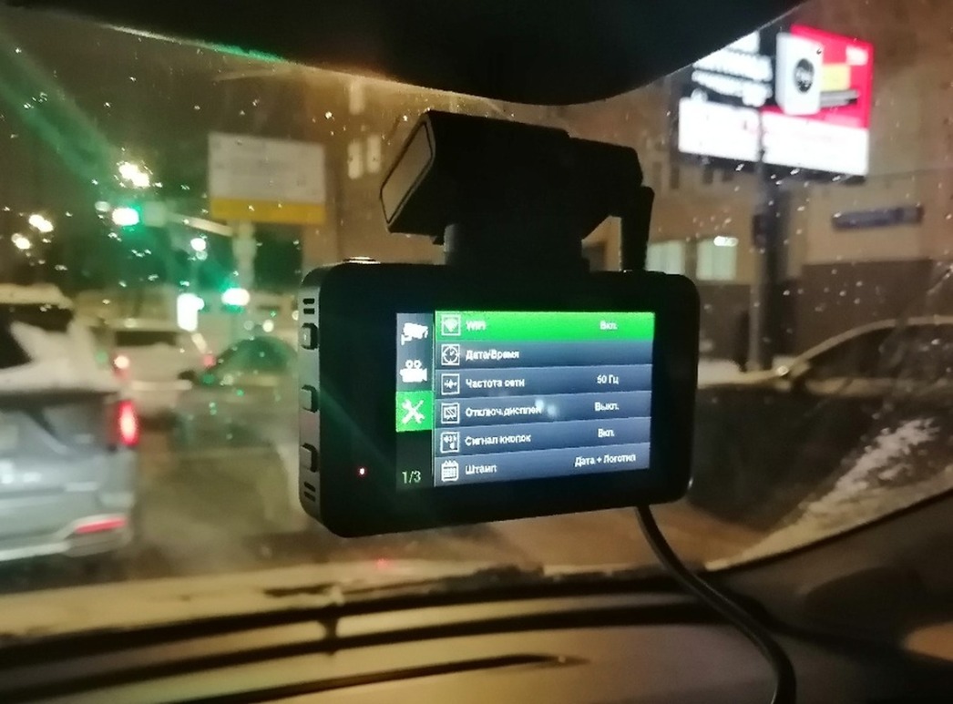 Держатель комбо с магнитным креплением клеится к стеклу на неотдираемый скотч. Свалиться — без шансов. На торцах расположены кнопки меню. Оно достаточно крупное, четкое и вполне стандартное для большинства «комбайнов». Имеет три раздела: настройки видео, радар-детектора с информером и изменяемые параметры технической части. Быстро выставляем параметры съемки и оповещения в соответствии со своими предпочтениями, без какой-либо необходимости заглядывать в инструкцию. Ежедневные перемещения предполагают езду по городу, поэтому я выбрал из четырех возможных режимов работы устройства (Трасса, Город 1, Город 2 и Сигнатурный) тот, что назывался «Город 1», чтобы аппарат меньше реагировал на лишние сигналы. Но периодически из любопытства «гонял» и в других режимах, чтобы понимать, что от него можно ожидать в разных ситуациях.