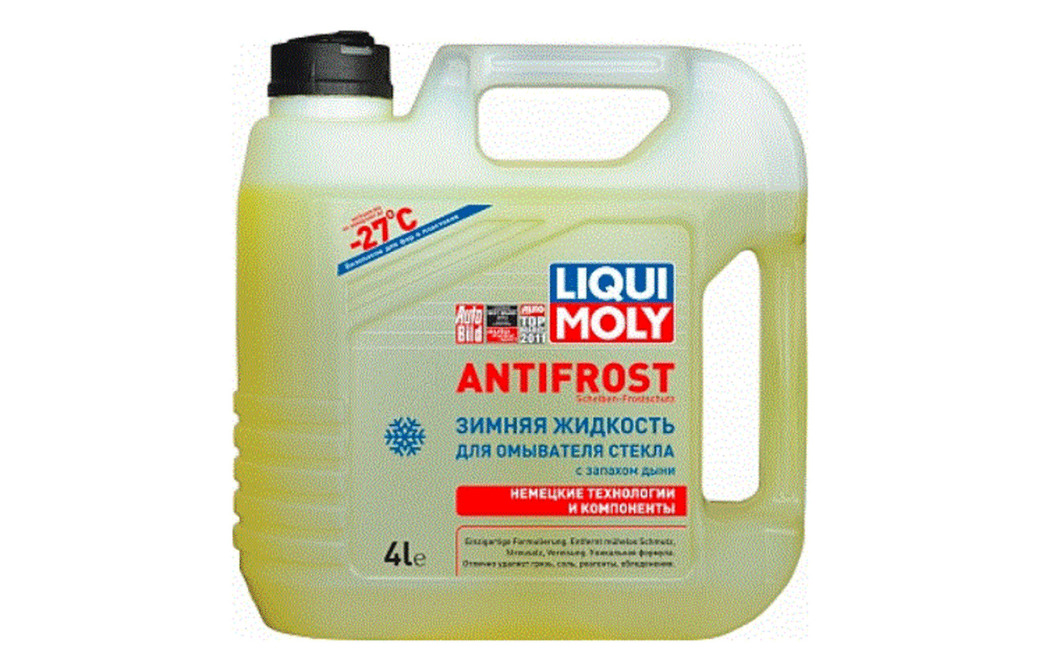 В числе «незамерзаек», которые уверенно прошли тест на поликарбонаты и уже доступны российским автомобилистам, стоит выделить составы под названием Antifrost Scheiben-Frostschutz с цифровыми символами −20 С и −27С. Как можно догадаться, последние две цифры в обозначениях соответствуют температуре начала кристаллизации на морозе.