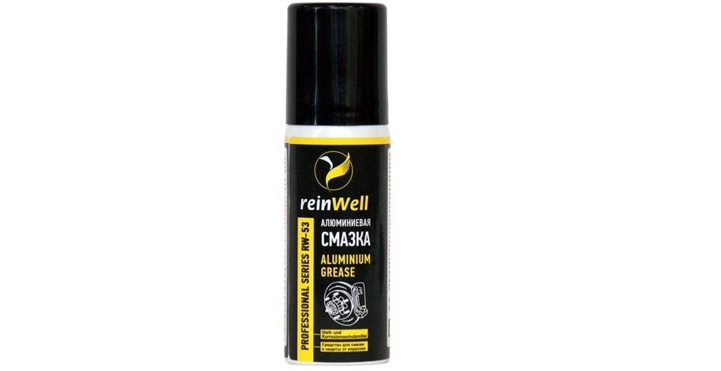 При обслуживании тормозов стоит обратить внимание и на алюминиевую спрей-смазку, также устраняющую разрушающее воздействие грязи, влаги и высоких температур. Именно такими свойствами и обладает продукт от reinWell с индексом RW−53.