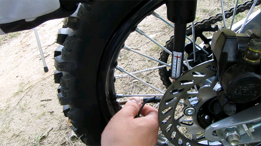 Хоть Berkut Specialist VL-1000 и позиционируется как велосипедный компрессор, мы решили проверить, способен ли он стать другом для мотоциклетных шин. Колесо питбайка имеет примерно тот же диаметр, что и велопокрышка, однако за счет более высокого профиля и большей ширины, оно требует значительного объема воздуха. Но наш испытуемый за какие-то 34 секунды набил заднюю покрышку питбайка до двух атмосфер. На накачку передней шины с 0 до 2 единиц ушло на десять секунд больше (дело в том, что переднее колесо в полтора раза больше заднего).