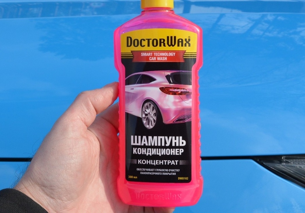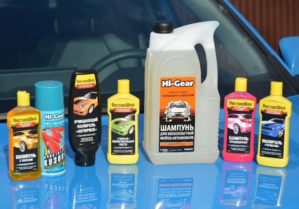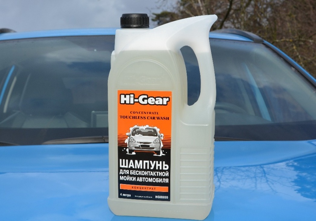 Если мы говорим о бесконтактной мойке, то в качестве примера автошампуня для нее можно использовать препарат от американского бренда Hi-Gear HG8009. Его активная пена оперативно и надежно ликвидирует самые стойкие загрязнения с наружных поверхностей автомобиля. Он легко смывается водой, не оставляя разводов и подтеков. Также имеет смысл обратить внимание на универсальные моющие средства — скажем, «Шампунь-кондиционер» DoctorWax DW8102. Образуемая им пена с полимерными добавками препятствует контакту частичек грязи и песчинок с краской, что уменьшает вероятность появления микроцарапин в ходе мойки не только на самом ЛКП, но и на слое полироля, которым оно может быть покрыто.