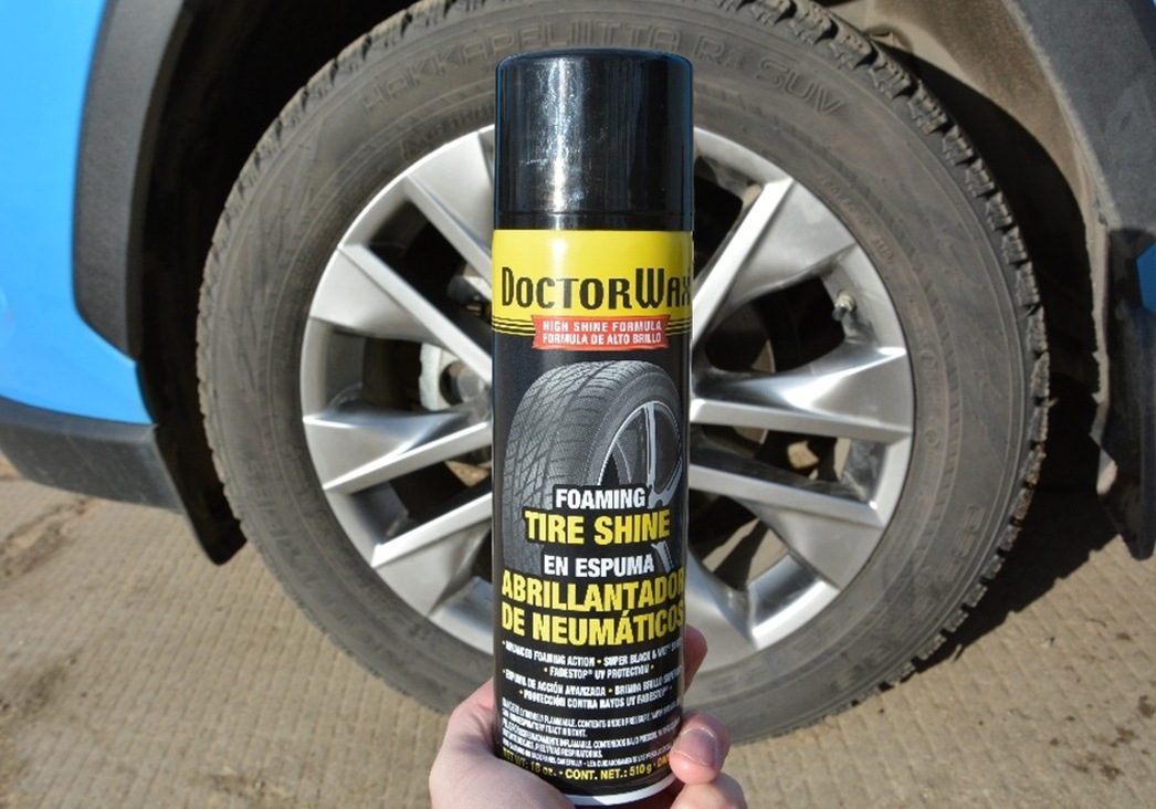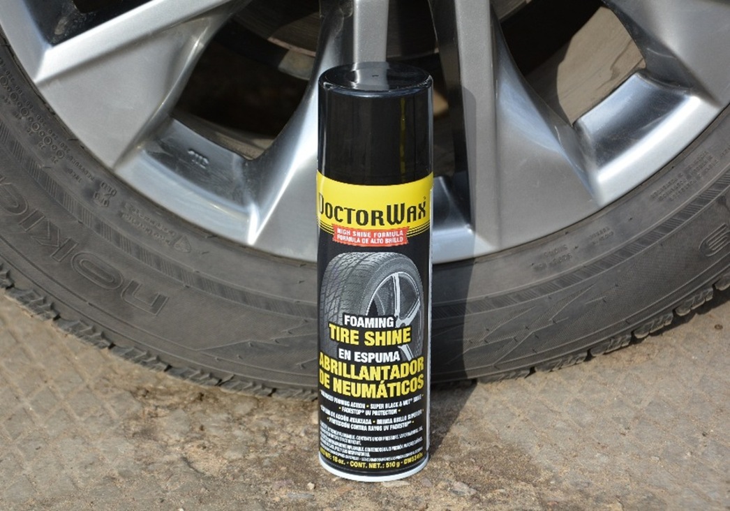 Аналогичным образом применяются пенные очистители шин, например DoctorWax DW5349S. Его вообще достаточно нанести на резину колеса и не смывать. Все лишнее вместе с грязью просто стечет, а боковые поверхности шин останутся черными и красивыми благодаря силиконовой основе препарата. Помимо создания сочного, влажного, вороного блеска, эта автохимия с помощью специальных присадок в своем составе предохраняет резину от высыхания и растрескивания, вызываемых ультрафиолетовыми лучами и просто временем. Это свойство позволяет успешно применять состав при сезонной консервации резины.