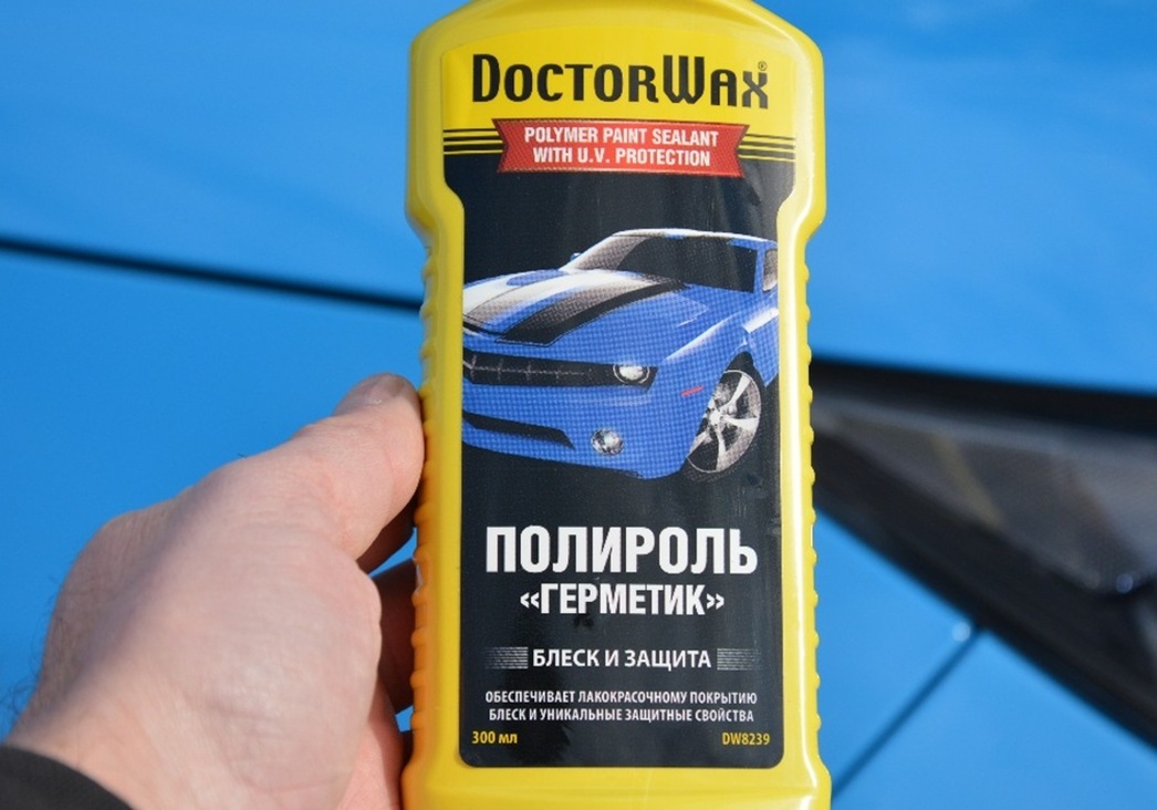 Если вы никогда не полировали кузов своего авто, то перед нанесением защитного полироля-герметика рекомендуется «пройтись» по кузову каким-нибудь «антицарапином» или абразивным полиролем, таким как DoctorWax DW8307. Эта полировальная паста удаляет окислившийся поверхностный слой краски, в котором присутствуют мельчайшие дефекты покрытия — царапины, въевшиеся следы от насекомых, древесная смола и прочее.