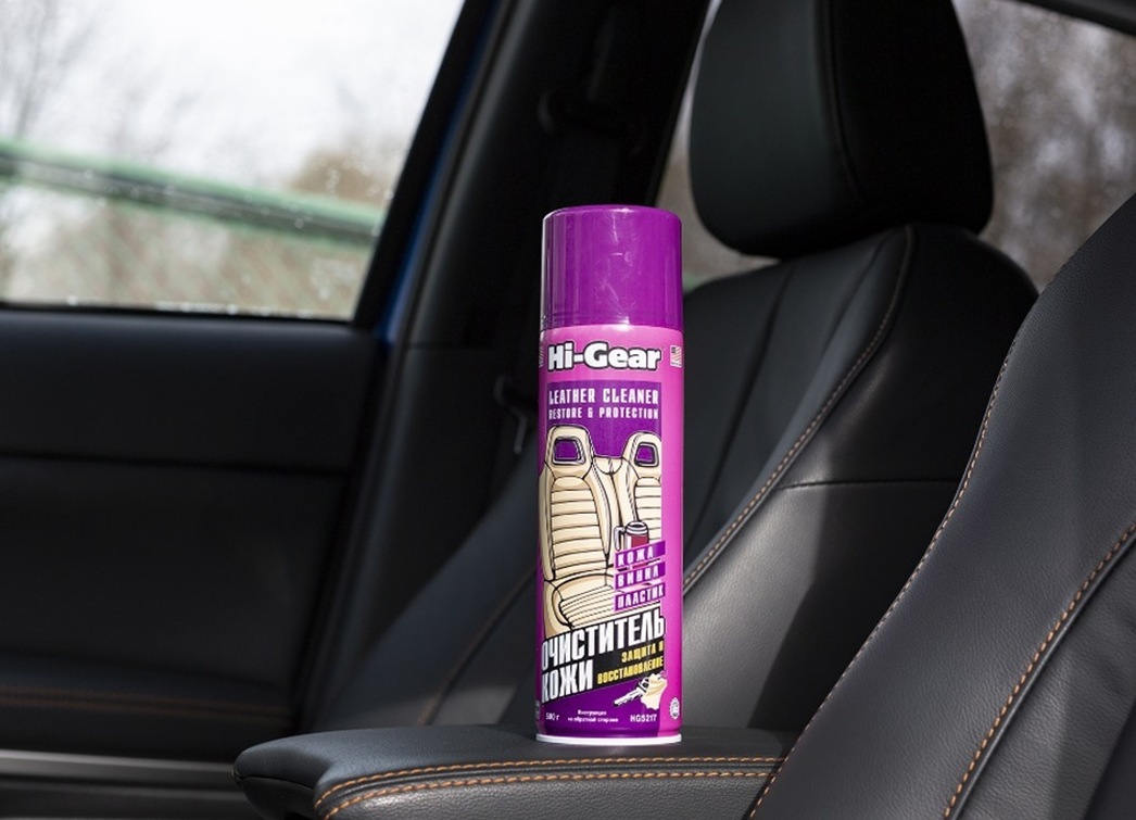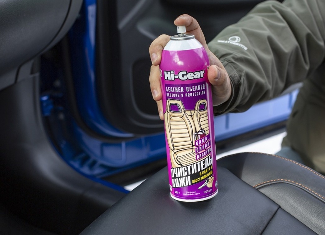 За зиму кресла и дверные карты покрылись непонятными разводами и пятнами, растеряли блеск и шарм. Чтобы получить возможность сменить темный зимний гардероб на светлый весенний и не испортить штаны, нужно тщательно поработать над подушками. Тут нам поможет «Очиститель кожи» HG5217 от Hi-Gear. Большого розового флакона хватит на обработку двух салонов: встряхнув, распылим «химию» на кожаные просторы и дадим ей впитаться. После — уберем ветошью. Очиститель кожи проникает вглубь материала, восстанавливает цвет и фактуру, впитывается без остатка, не оставляя следов и разводов. Им же можно «пройтись» и по пластику.
