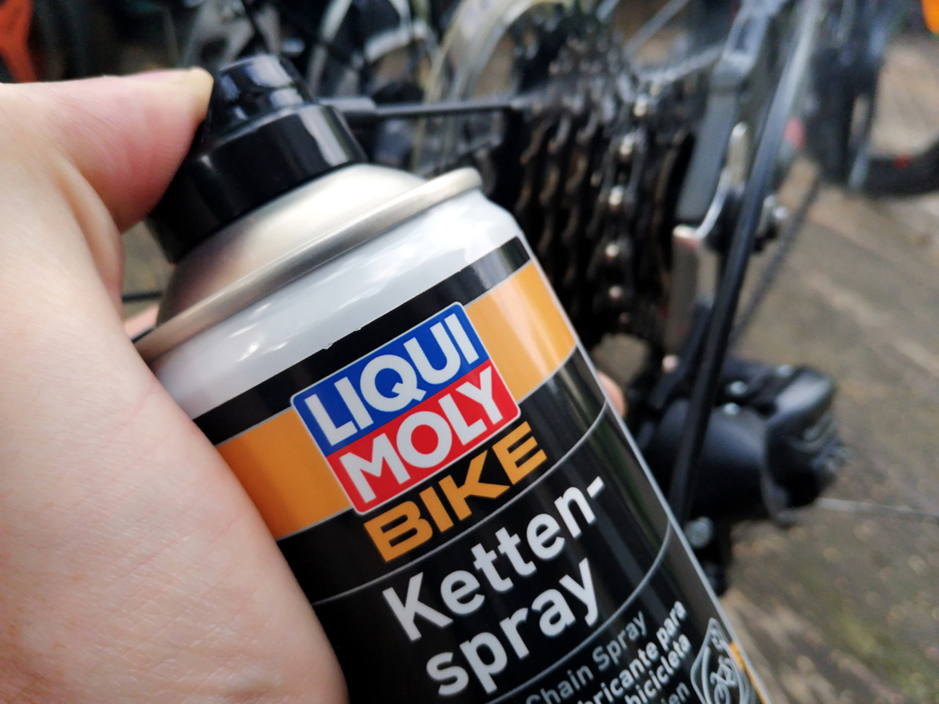 После того, как мы отмыли приводной механизм, берем универсальную цепную смазка для велосипеда Liqui Moly Bike Kettenspray и равномерным слоем наносим на поверхность. Биоразлагаемый аэрозоль на растительной основе, благодаря специально подобранной формуле, отменно держится на поверхностях деталей при любых погодных условиях. Bike Kettenspray обладает высокой проникающей способностью, вытесняет влагу, отталкивает воду, обеспечивая ровный ход цепи без рывков.