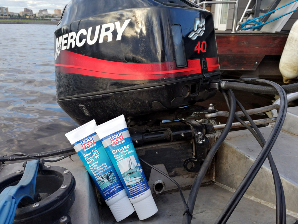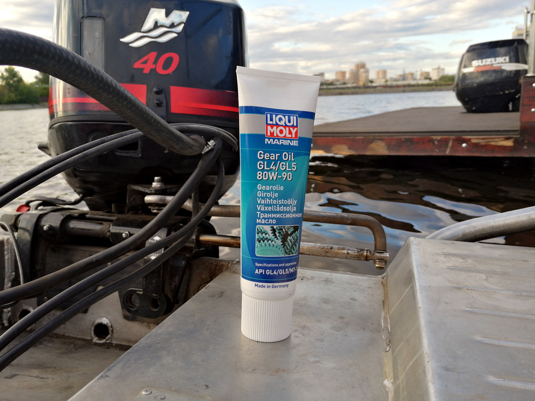 Для смазки «сапога» большинства моторов требуется специальное трансмиссионное масло с вязкостью SAE 80W-90 и спецификацией API GL-4/GL-5. Среди продуктов, выпускаемых Liqui Moly, есть минеральная трансмиссионка Marine Gear Oil 80W-90.