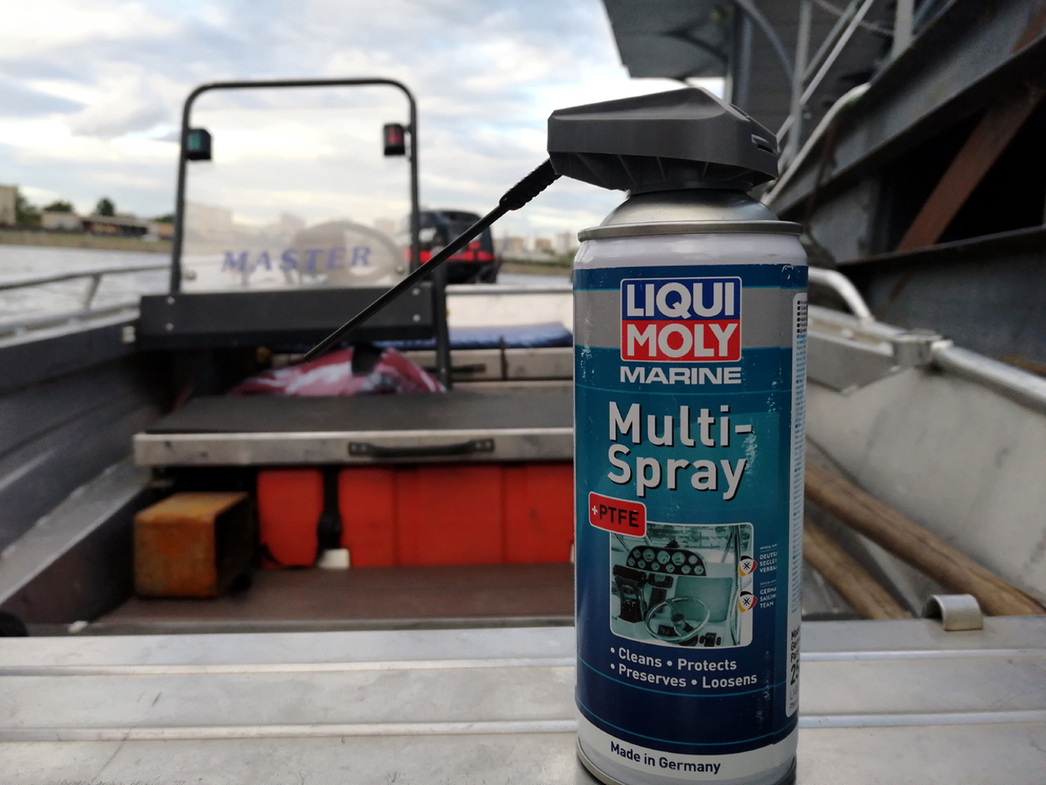 Поскольку для лодок, катеров и яхт родной стихией является вода, то проблема появления пятен ржавчины на металлических поверхностях вполне закономерный процесс. Для удаления следов коррозии и профилактики появления новых «рыжиков», специалистами Liqui Moly создан мультиспрей для водной техники Marine Multi-Spray. Состав средства позволяет без особых усилий ликвидировать ржавчину, вытеснять влагу, и смазывать узлы плавсредства.