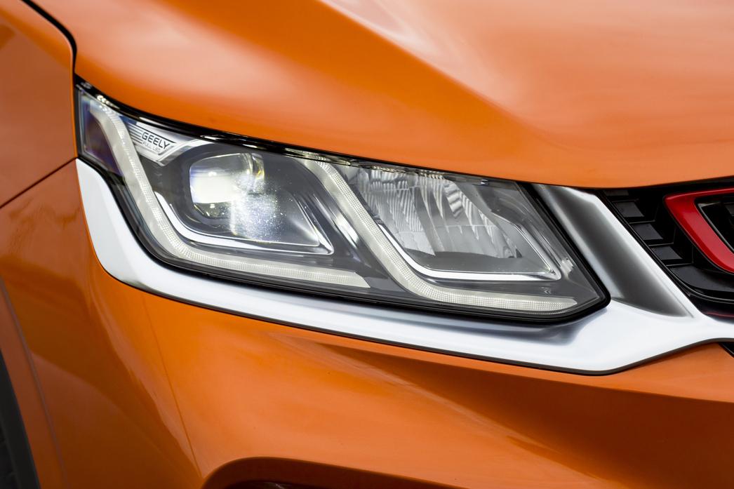 Немногим больше миллиона за новенький «паркетник». Да не абы какой — спортивный. Вы только посмотрите: красные тормозные суппорты, массивное антикрыло, двухцветное оформление кузова с перекликающимися контрастными оттенками, четыре патрубка выхлопной системы (не бутафория, между прочим), накладки под карбон. Ну чем не спорткар? Ладно, шутки в сторону — дизайн экстерьера, и вправду, удачен. Браво, Geely!