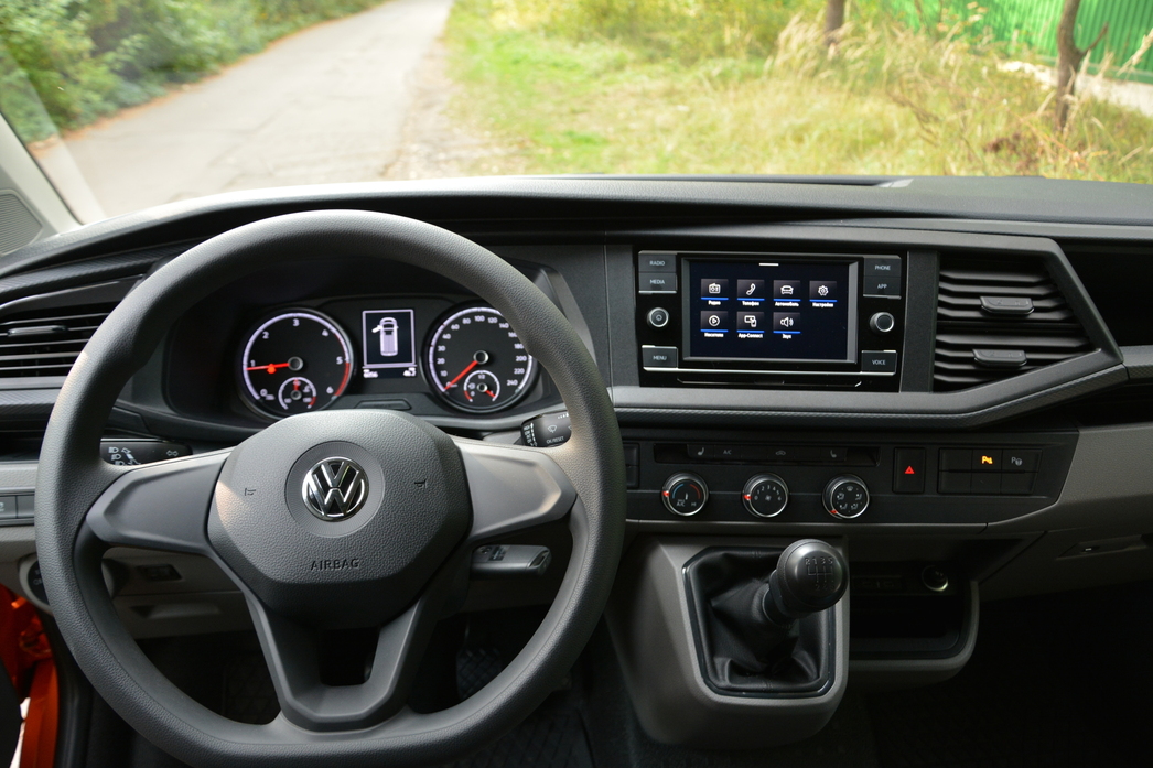 И выбрали для знакомства именно нашего «апельсинчика» — Transporter 6.1 Kasten L2H2 TDI-110. Внешне рестайлинговую модель отличить от привычной «шестерки» достаточно просто — по форме передних фар, лишившихся характерных вычурных «уголков». Прочая внешность в ходе «реновации» практически не пострадала. Основные «имиджевые» изменения пришлись на интерьер кабины.