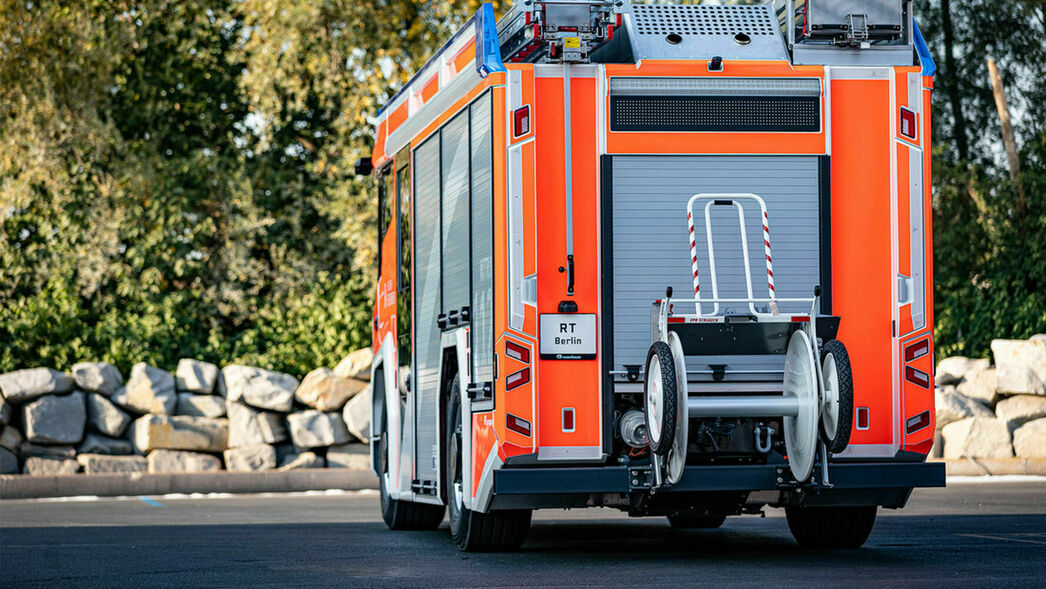 Насладившись эффектом и оценив готовность публики восторгаться, превозносить и фетишизировать, австрийцы без предупреждения сделали следующий автомобиль — Rosenbauer RT (Revolutionary Technology). Поскольку RT такой же внезапный и красивый, про него восхищенно подумали, что он тоже электрический. А на самом деле это гибрид. Первый в истории пожарный автомобиль с двумя электромоторами и одним дизельным двигателем. RT едет всегда за счет электромоторов в 490 л. с., но откуда брать энергию решает водитель — можно от аккумулятора, а можно от дизеля V6 в 272 л. с.