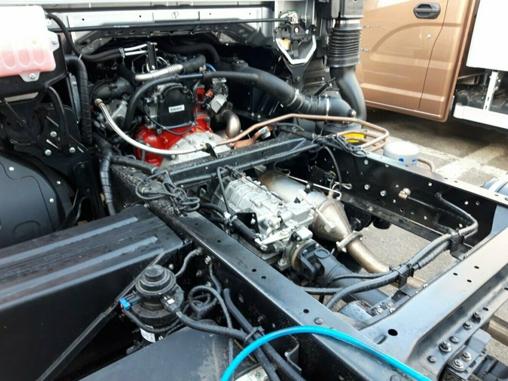 Под кабиной скрывается турбодизель Cummins объемом всего 2,8 литра — такая же 150-сильная «четверка» стоит на «Газелях», хотя «Газонам» полагается уже движок ЯМЗ кубатурой 4400. С газелевским мотором на «Валдае» спарена новейшая 6-ступенчатая «механика», которую ГАЗ разработал своими силами. Эти агрегаты хорошо видны на опубликованных фотографиях.