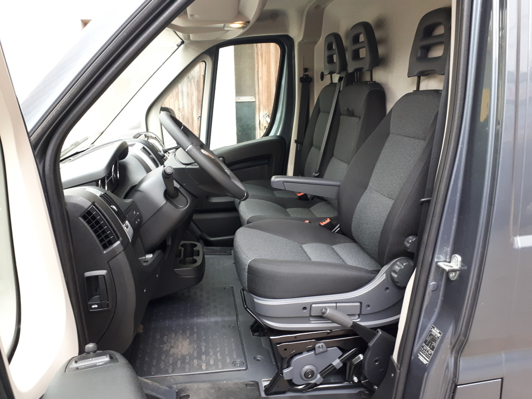 Что касается наддувного дизельного мотора серии MultiJet (150 л. с.), то его максимальная тяга в 380 Нм доступна уже с 1500 об/мин. То есть в ручном режиме можно смело трогаться со второй передачи, если в кузове нет груза. Двигатель, кстати, довольно тихий, даже если есть желание его «покрутить». А оно частенько появляется, когда перевожу рычаг трансмиссии в ручной режим и выбираю третью передачу. Так Ducato становится довольно бодрым.