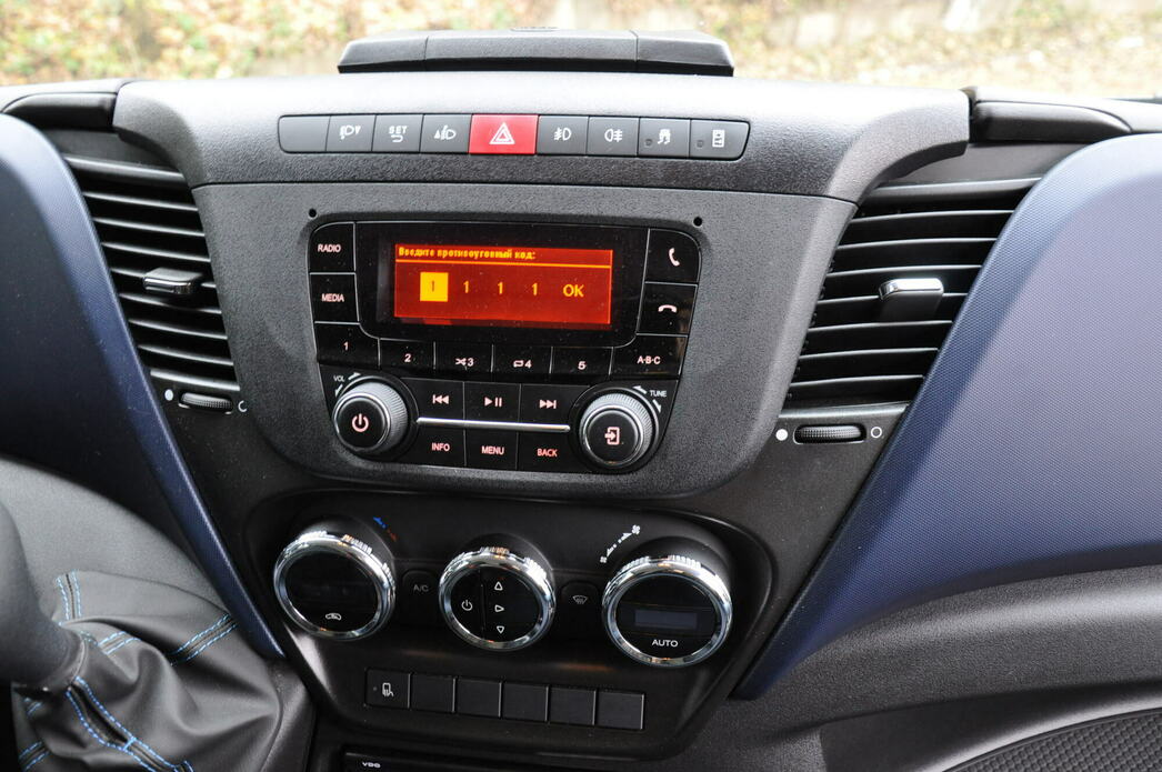 Открываю широкую дверь и сажусь в кабину. Она очень просторная. Тут три человека разместятся без проблем, и не будут упираться друг в друга локтями. Руль регулируется по вылету, а кресло можно подогнать по высоте. Его набивка очень плотная, а спинка расположена почти вертикально. Получается рабочая посадка без возможности вальяжно завалить назад спинку. Да того и не требуется. Вполне комфортно и так.