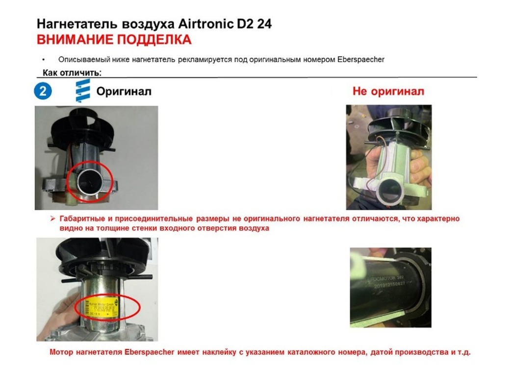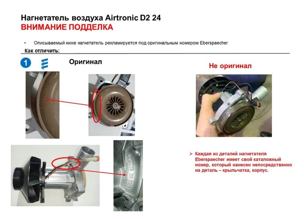 Как показывает практика — копия всегда уступает оригиналу. Если у вас возникнут какие-либо малейшие сомнения — всегда можно обратиться на горячую линию (телефон приведен выше) за помощью. Компания Eberspächer заинтересована в очистке рынка запасных частей от контрафакта, так как он вредит имиджу бренда.