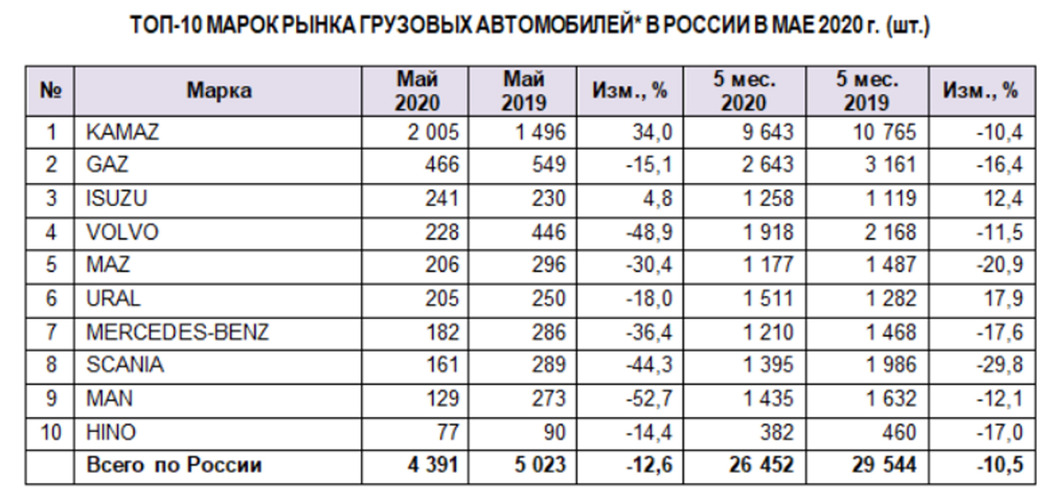 Но в целом, повторимся, рынок легкого коммерческого транспорта просел в мае на 27%, а положительную динамику тут показали только Ford (+33%) и FIAT (+9,4%).