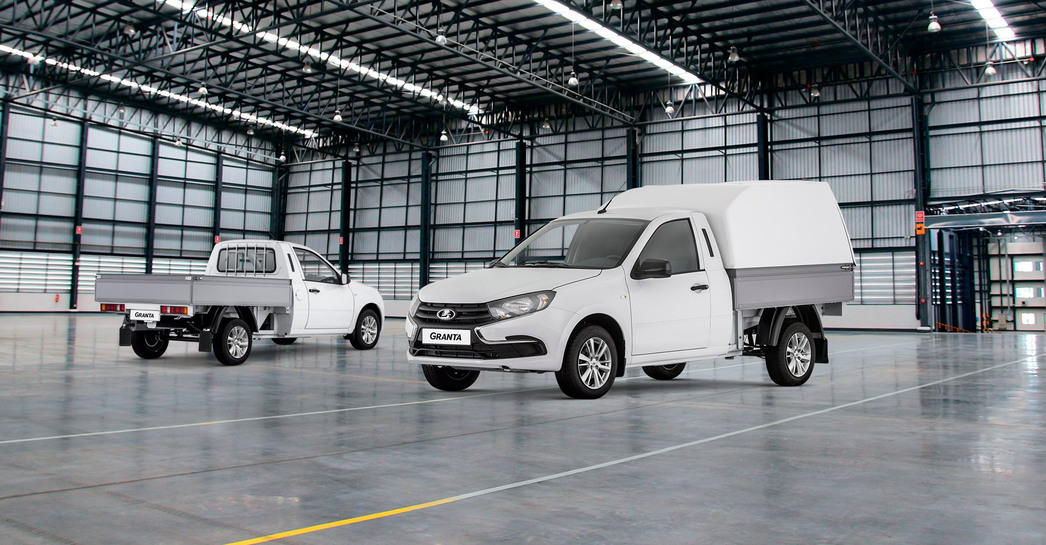 Весьма доступный вариант — грузовая LADA Granta. Это простая полурамная модель, которая, однако, обладает весьма серьезными грузовыми возможностями. Благодаря задней рессорной подвеске, машина готова взять на борт до 875 кг поклажи при собственной максимальной массе чуть больше двух тонн. В грузовом отделении такой «Гранты» легко помещается пара стандартных европоддонов.