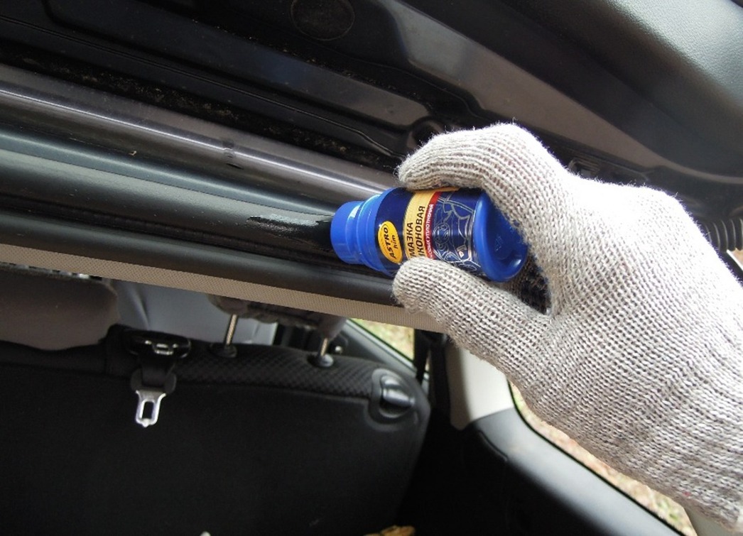 Пока автомойщики «колдовали» над моим автомобилем, я внимательно наблюдал за их манипуляциями. Поэтому обратил внимание на синий карандаш, которым они промазывали уплотнители моего автомобиля. Их «волшебной палочкой» оказалась силиконовая смазка с роликом Astrohim. Потом купил себе такую же в небольшом магазинчике при мойке. Раньше покупал в виде аэрозоля, но эта оказалась значительно удобнее, по сторонам ничего не разбрызгивается.