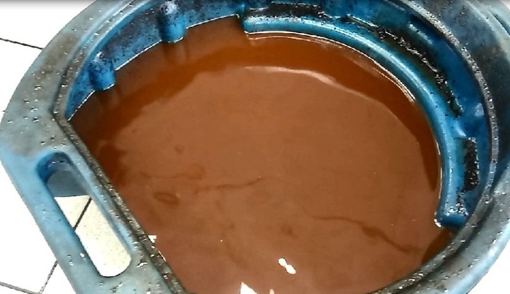 Как видно на снимках, цвет антифриза, слитого сразу после предварительной промывки системы охлаждения, вместо исходного ярко-зеленого стал мутно-коричневым. К слову, для чистки использовалась специальная присадка Kuhler reiniger, благодаря которой каналы системы удалось тщательно очистить от ржавчины и накипи в так называемом щадящем режиме.