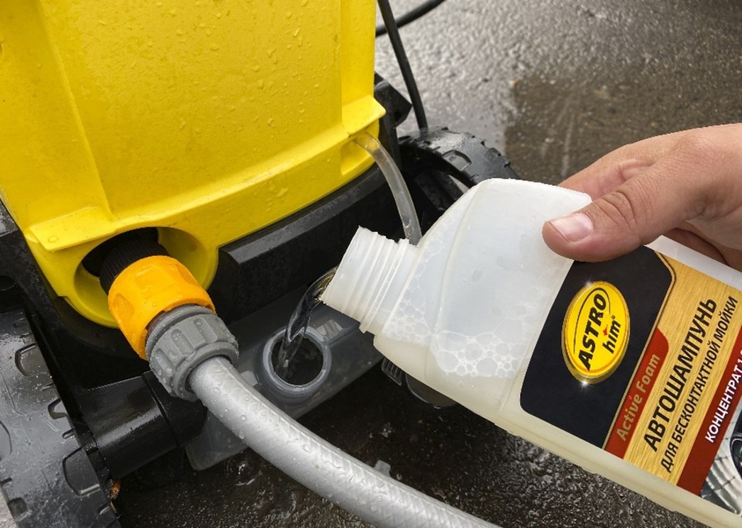 Опыт — дело важное и нужное, но ключ к решению назойливого вопроса обычно кроется в другой области: машину мало обдать водой, дороги у нас исторически грязные, да еще и залитые океаном реагента, поэтому для добротной мойки потребуется специальный автошампунь для бесконтактной мойки. Тем более, что минимальное изучение подаренного устройства, вероятнее всего, откроет еще одну тайну: в нем изначально заложена специальная емкость для моющего средства, для применения которого нужно всего лишь его туда залить в соответствии с рекомендациями производителя шампуня. Ничего сложного, как видите.