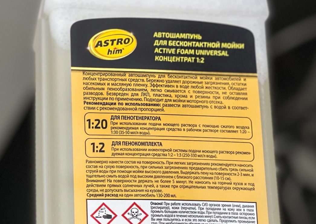 В качестве примера приведем автошампунь Universal от Astrohim. В его составе есть специальное вещество — комплексообразователь. За счет него шампунь хорошо отмывает грязь с кузова, как при использовании жесткой воды, так и при использовании мягкой. И не оставляет разводов. К тому же полностью биоразлагаем, а значит не навредит вашему урожаю и окружающей природе.