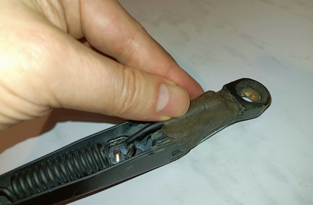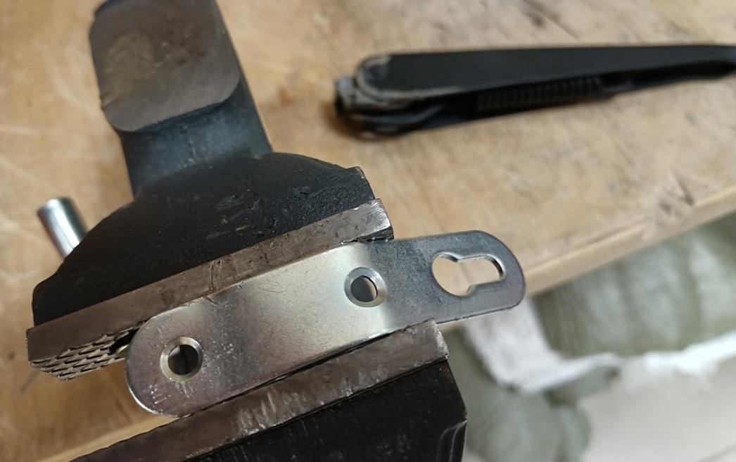 Тогда хозяин машины вспомнил свои гаражные навыки прошлых лет и решил сам восстановить рычаг стеклоочистителя. План по «объединению» обломанных частей детали уже созрел в голове. Было решено просверлить в них отверстия и затем скрепить двумя жесткими связующими «мостиками» — одним с внутренней стороны, другим — с внешней.