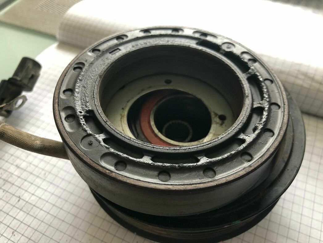 Замена муфты без снятия компрессора — решение посредственное. Там имеется специальная гайка, которую нужно очень точно поставить, так что развоздушиваем, перебираем, ставим на место и заправляем. Можно в кассу.