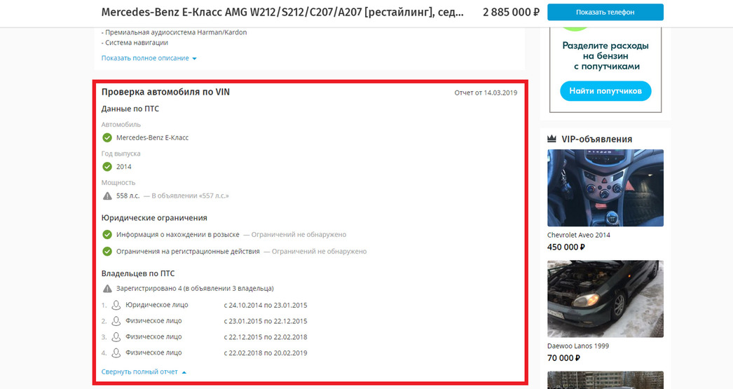 Если раньше покупателям, подыскивающим себе авто в интернете, приходилось верить продавцам на слово, то теперь — вроде как — они могут не беспокоиться за достоверность указанных в объявлении данных: количестве прежних владельцев, «аварийной» истории и юридических моментов. Торговцы указывают в публикации идентификационный номер машины, и сервисы автоматически подгружают информацию, доступную любому желающему.