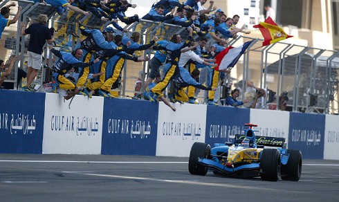 Михаэль Шумахер, Дэймон Хилл, Жак Вильнев и Фернандо Алонсо, представлявшие команды Renault,